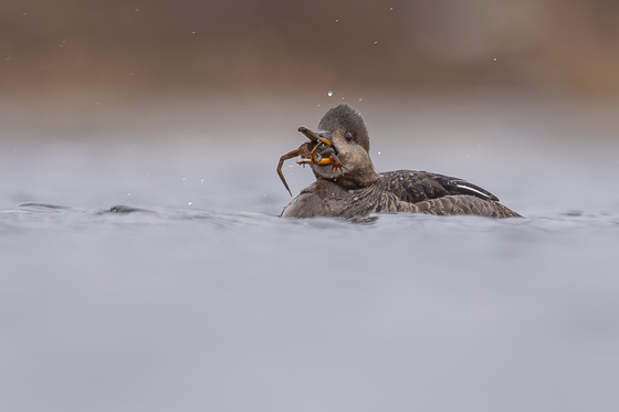 Hooded merganser with 🐸