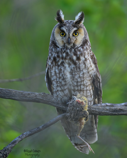 I had been watching this nest site for awhile waiting for the chicks to hatch and the adults to begin the constant feeding as the young grew. Here the female stops before going to the nest. Magpies where harassing as she waited here.