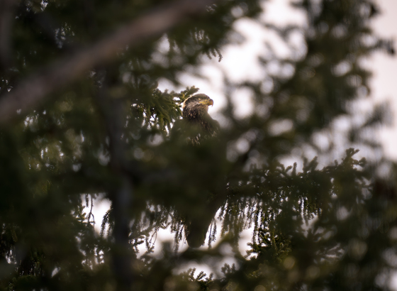 eagle plant tree fir conifer animal bird branch twig atmospheric_phenomenon
