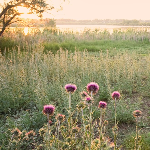 The rising sun lit up the flowers and the grasses, giving them a golden glow for a few moments. I used a filter in ON1 to enhance the glow a bit.
