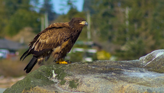 When the posterior rises slowly in this characteristic pose the result is predictable. This is most likely a juvenile Golden Eagle judging from the yellow on the beak.