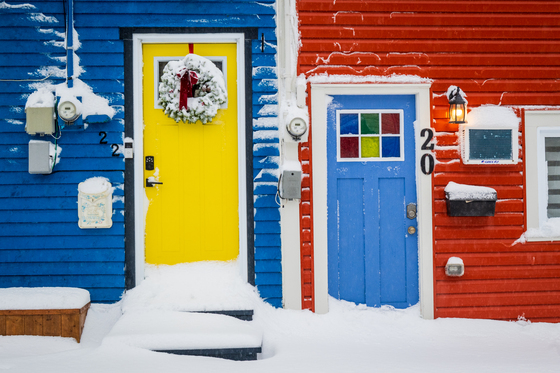 st john s newfoundland city winter architecture building outdoors shelter nature door countryside hut rural wall blue red snow yellow freezing