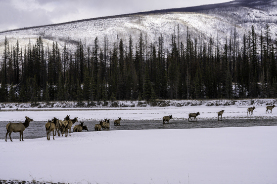 Winter brings lots of challenges. This herd of elk navigates the icy waters for survival