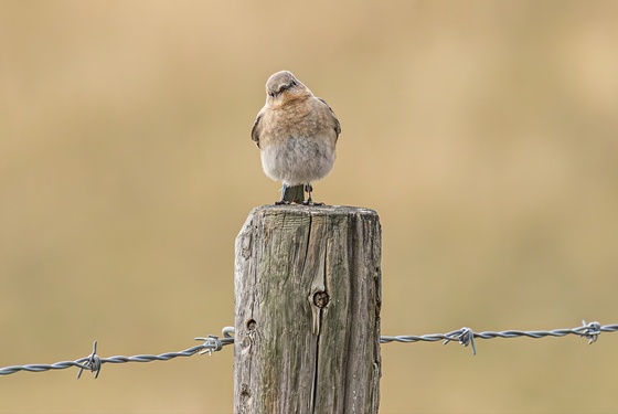 Tagged: animal bird anthus finch beak wire_fencing barbed_wire grey