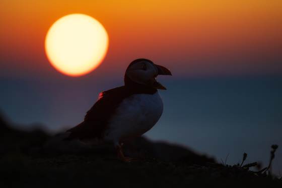 animal bird puffin nature outdoors sky auk seabird atlantic_puffin dusk beak sunset afterglow evening