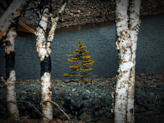 As chilly days continue, a bit of greenery is finally coming through. This young pine tree is found on the edge of the reservoir, Truro NS.