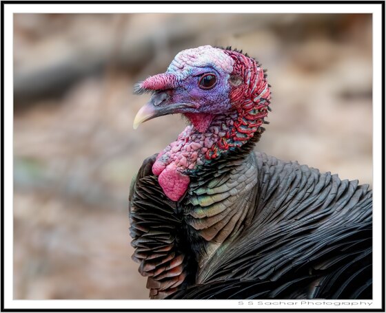 A portrait of a wild turkey