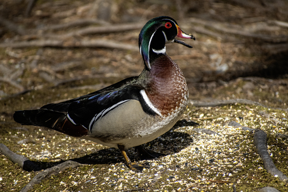 I have seen a pair of Wood Ducks in a little pond near us frequently, and yesterday, the first day of 'spring' weather, I found their likely nesting area. Both the drake and hen showed up to feed on some grain, but the hen left, leaving her hubby to clean up. Looking forward to many more friendly encounters over the spring.