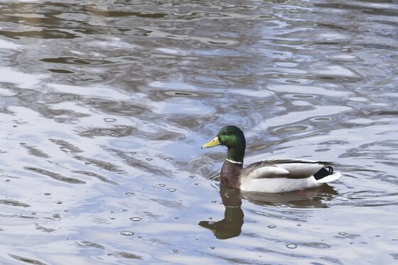 A duck cruising on Wascana Creek, soon after the ice broke up.
