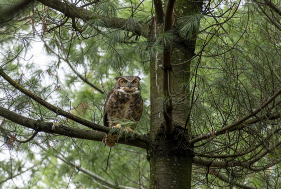 During a morning walk along the river, I came across this Great Horned Owl perched along the trail's treeline. The trail was calm and quiet - and from my vantage point I captured a few pictures of it before continuing on. This GHO is actually part of a pair that currently have a nest in a nearby tree.