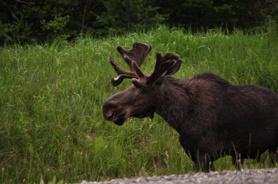 This moose was happily feeding along side of the highway near White River, On.